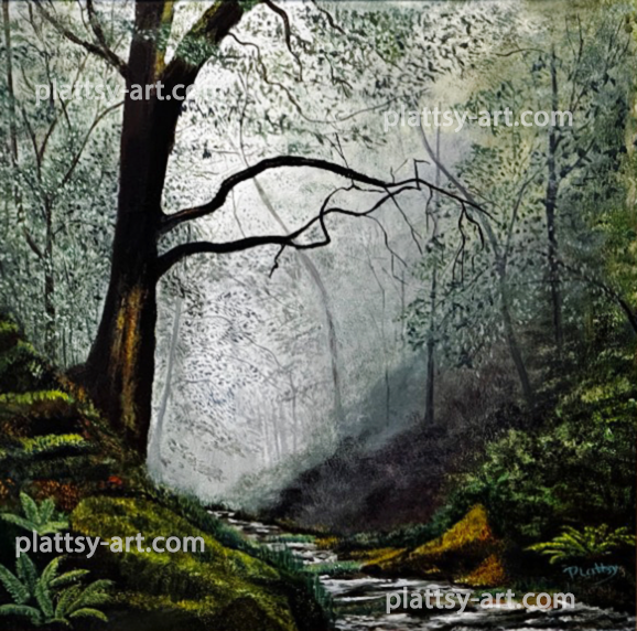 MMystic Wood is an evocative oil painting on board that captures the quiet enchantment of a hidden forest realm. With rich, layered brushwork and a palette that shifts between deep earth tones and ethereal highlights, the piece invites viewers into a dreamlike landscape where light filters through ancient trees and mystery lingers in the shadows. The composition balances realism with a touch of the surreal, suggesting a place both familiar and otherworldly. Since its creation, Mystic Wood has found a new home, having been sold to a private collector—yet its atmospheric presence continues to resonate through memory and imagination.